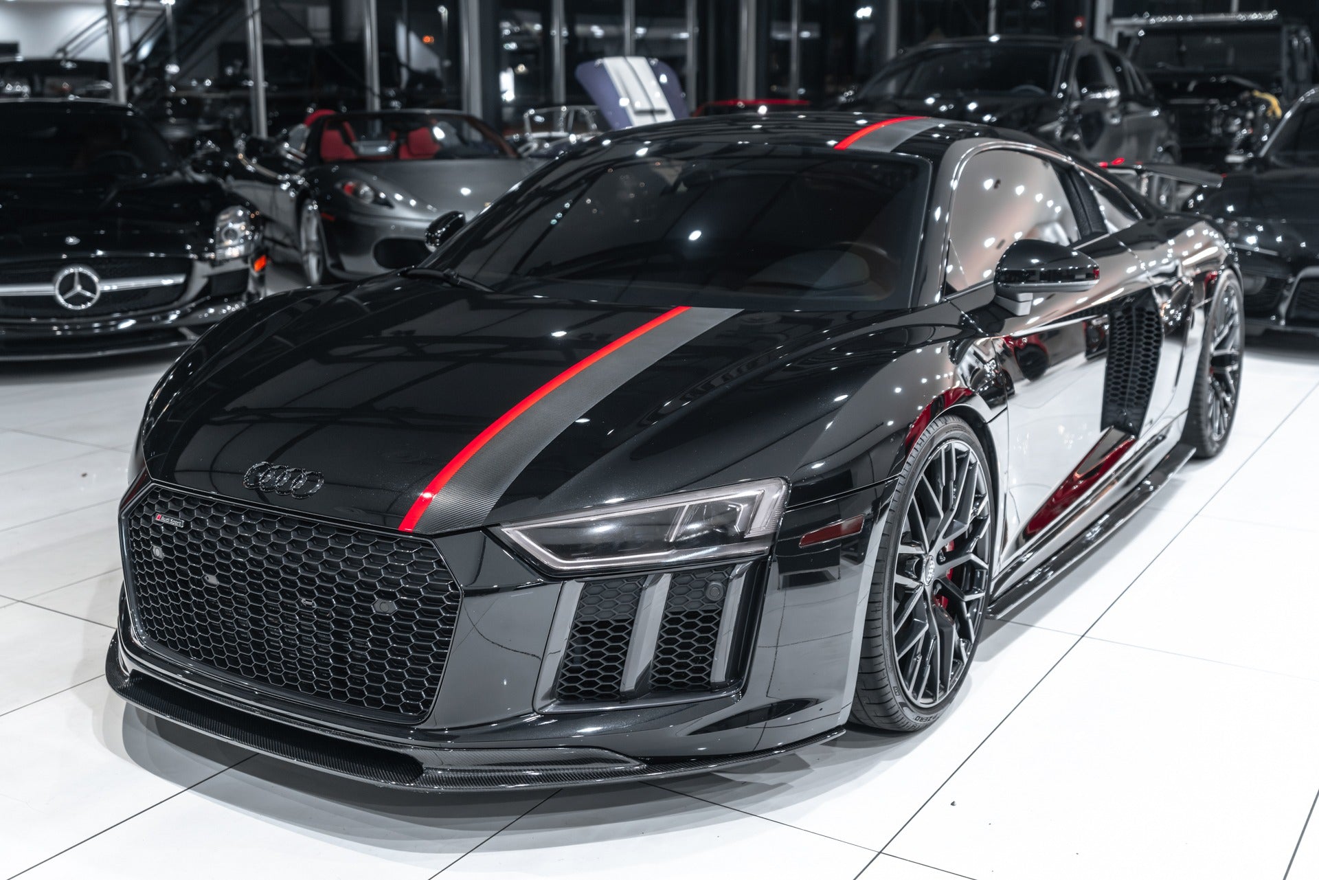 - Feature: The exclusive dry carbon fiber front bumper splitter receive a distinctive depth effect through multiple layers of paint and subsequent high-gloss polishing.