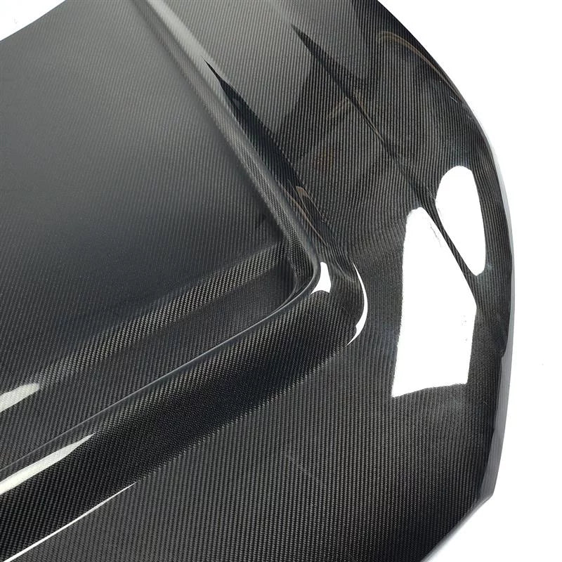 - Our carbon fiber hood provides the vehicle with a unique, athletic, and premium aesthetic.